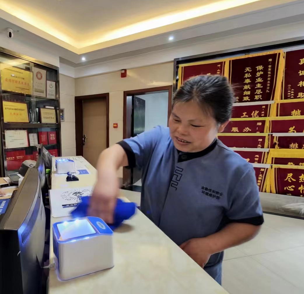 羅玉清每天都認認真真、兢兢業(yè)業(yè)地干好本職工作。2019年6月,由于夜間老年人翻扒小區(qū)垃圾桶的現(xiàn)象較為嚴重,項目領(lǐng)導(dǎo)與羅玉清溝通延長值班時間,她毫不猶豫地同意了。對于晚上出現(xiàn)的突發(fā)性衛(wèi)生問題,得到消息的第一時間,她都是“喂...哪里?好,我馬上去處理......"。十年來,不管是嚴寒酷暑,還是吹風(fēng)下雨,在光明城市小區(qū)的夜晚都有她辛勤的身影。